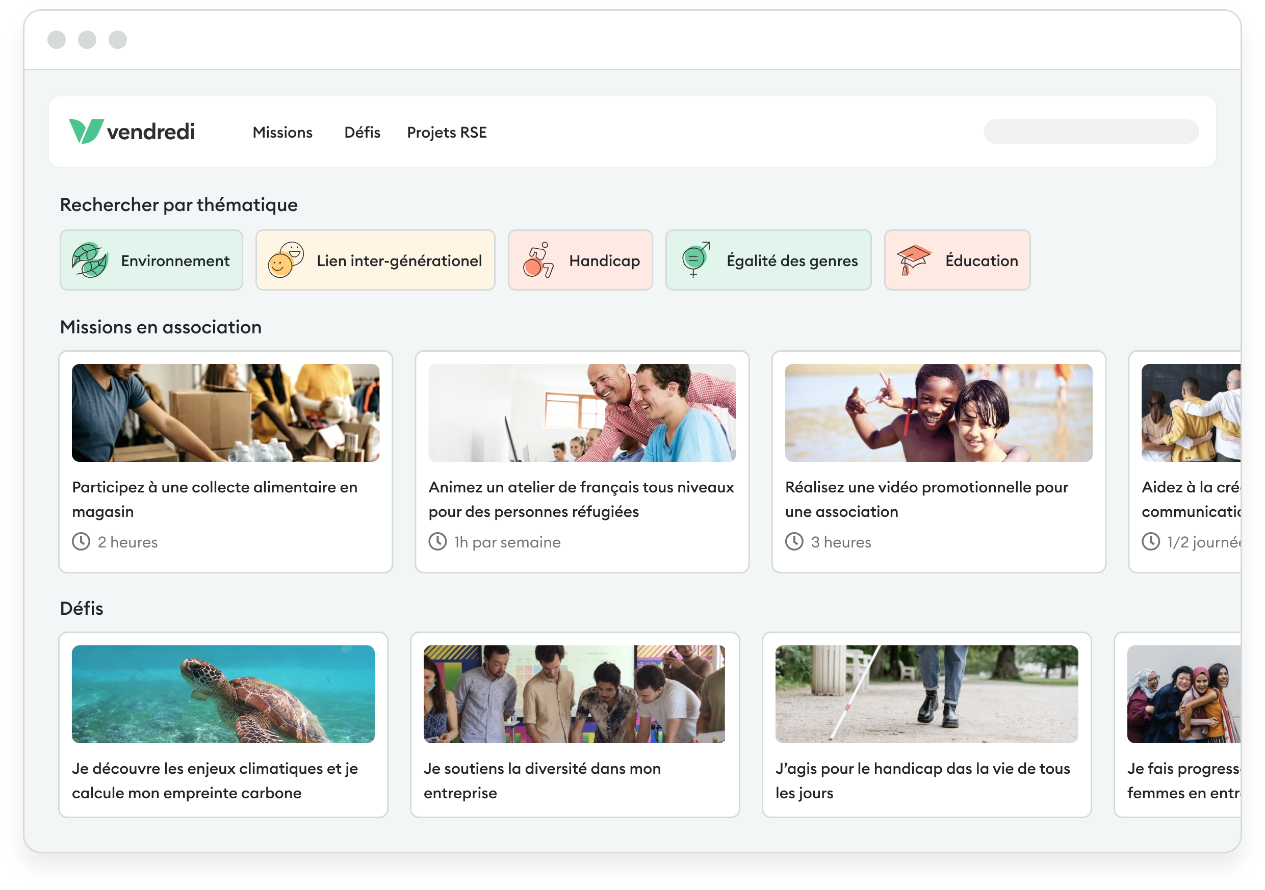 Avec Vendredi, vos salariés s'informent, se sensibilisent, agissent auprès d'associations et prennent part à votre stratégie RSE.